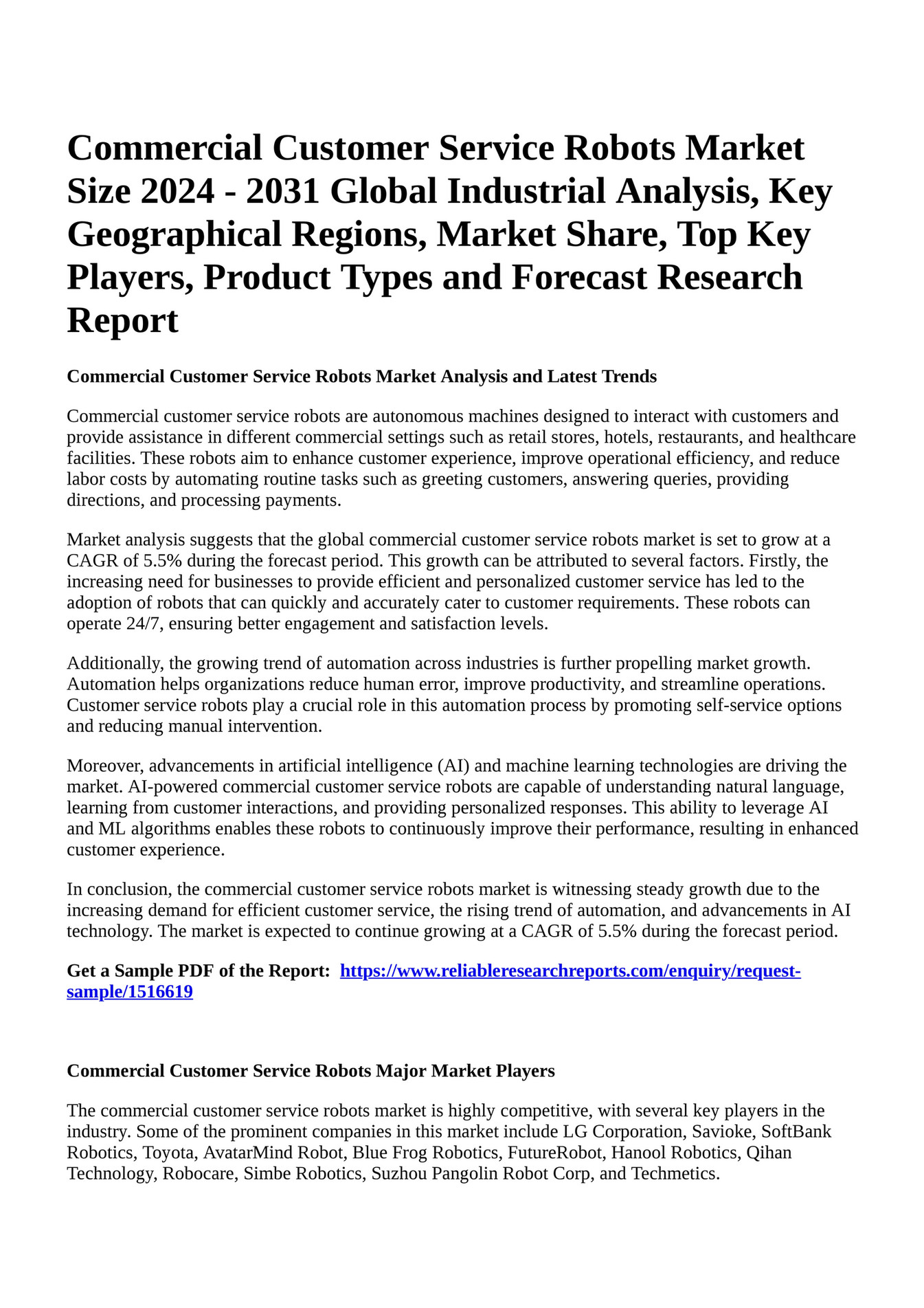 Source : www.amazon.comReportprime Commercial Customer Service Robots Market Size 2024